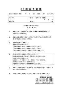 放射線科直通電話 048-640-2251へ お電話ください。 検査日時の予約、注意事項をお伝えします。 |