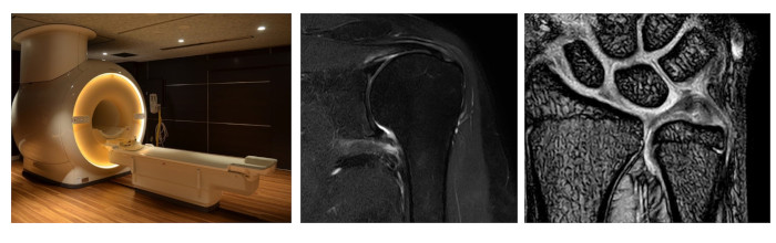 当院ではPHILIPS社製の磁場強度1.5T(テラス)のMRI装置が2台稼働しています。X線を使用しないため放射線による被ばくもなく、脊椎や関節など詳細に撮影できます。また、造影剤を使用せずに脳血管などの血管の情報を得ることが出来ます。